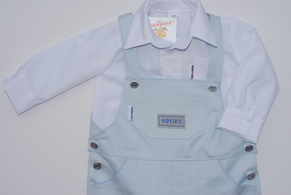 Jakiś czas temu pomyślałam że fajnie byłoby mieć w sklepie ogrodniczki-spodnie idealne na chłodne dni-w których po plecach dziecka nic nie wieje. Mam już takie koszulko-body- połączenie koszuli wizytowej z bodami. Pora na spodnie.